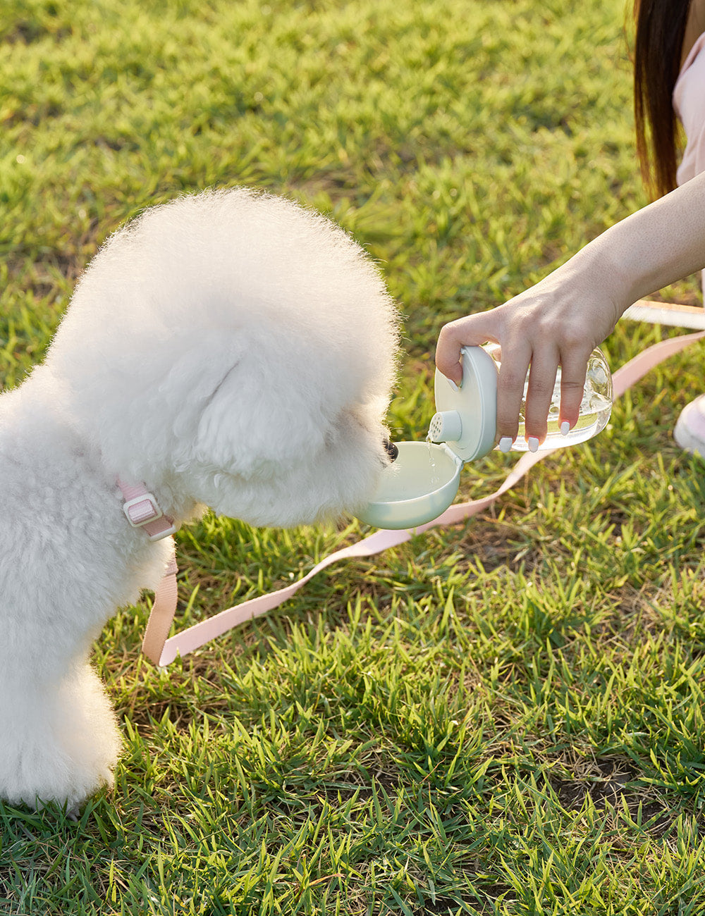 Amy C I've been waiting for this specific water bottle to restock. When it did, I quickly checked out. This one fits perfectly in my travel bag, and I like how you can push the button and control how much water flows out. Very sanitary and my pup is not afraid to drink from it (definitely a plus!)